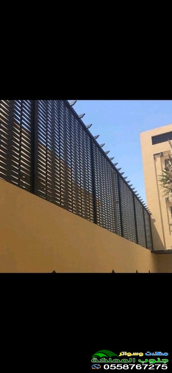 4. الإضاءة: يمكن إضافة إضاءة مثبتة على السواتر الحديدية لإبراز التصميم وتوفير إضاءة إضافية في الليل. يمكن استخدام الإضاءة المباشرة أو الإضاءة الخافتة لتحقيق تأثيرات بصرية مميزة.